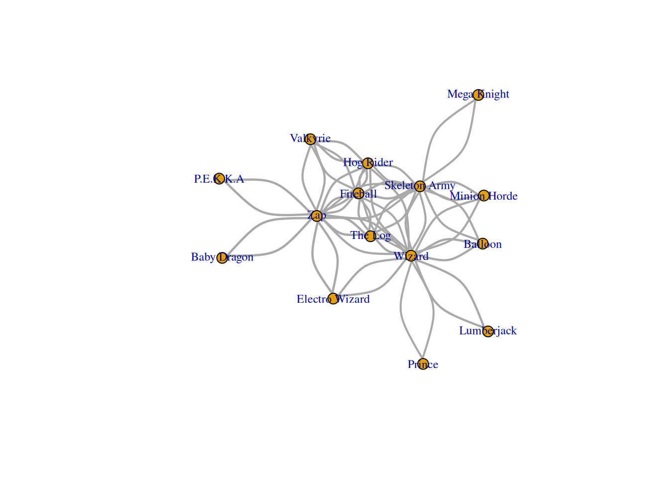 A network analysis tutorial exploring card synergy in Clash Royale using Season 3 deck data.