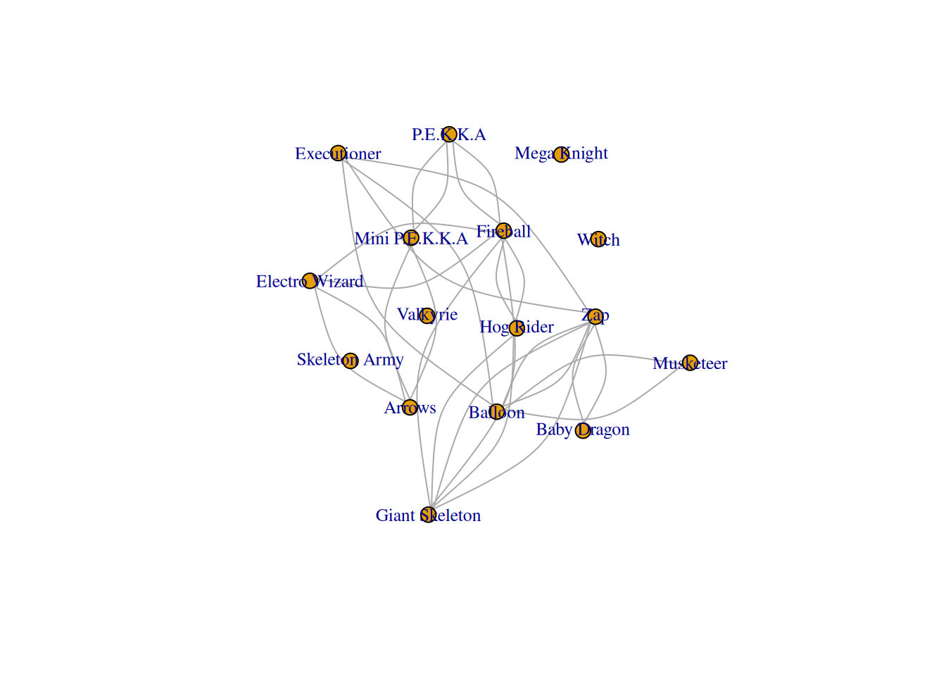 Success in the game depends heavily on card combinations, as certain cards perform more effectively when used together. Because of this emphasis on synergy, Clash Royale provides a natural setting for studying relationships between elements using network analysis.